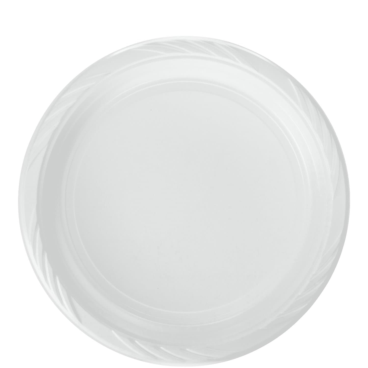 These Plastic 9" Disposable White Lightweight Dinner Plates are the perfect solution for your dining needs! They are not only practical but also add a touch of elegance to any occasion. With their 9" diameter, they are perfect size for serving appetizers, side dishes, and desserts.