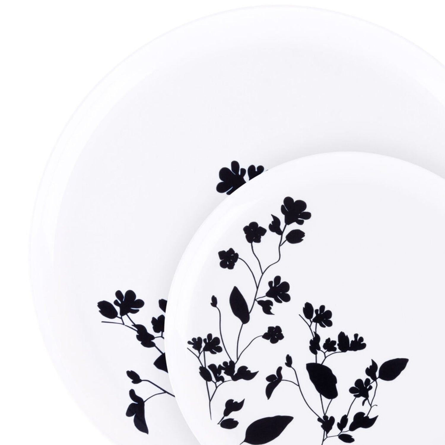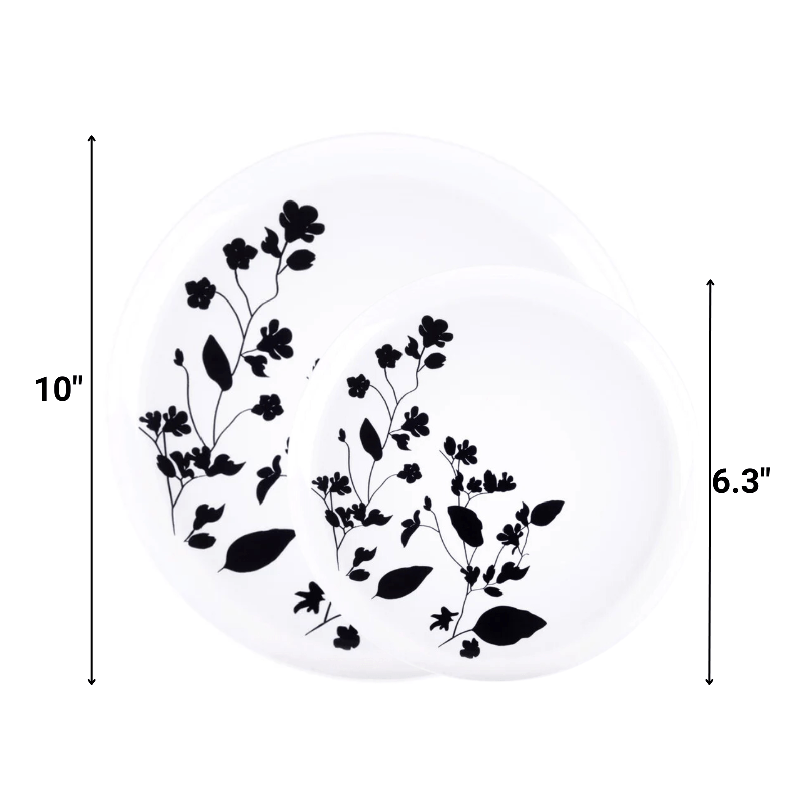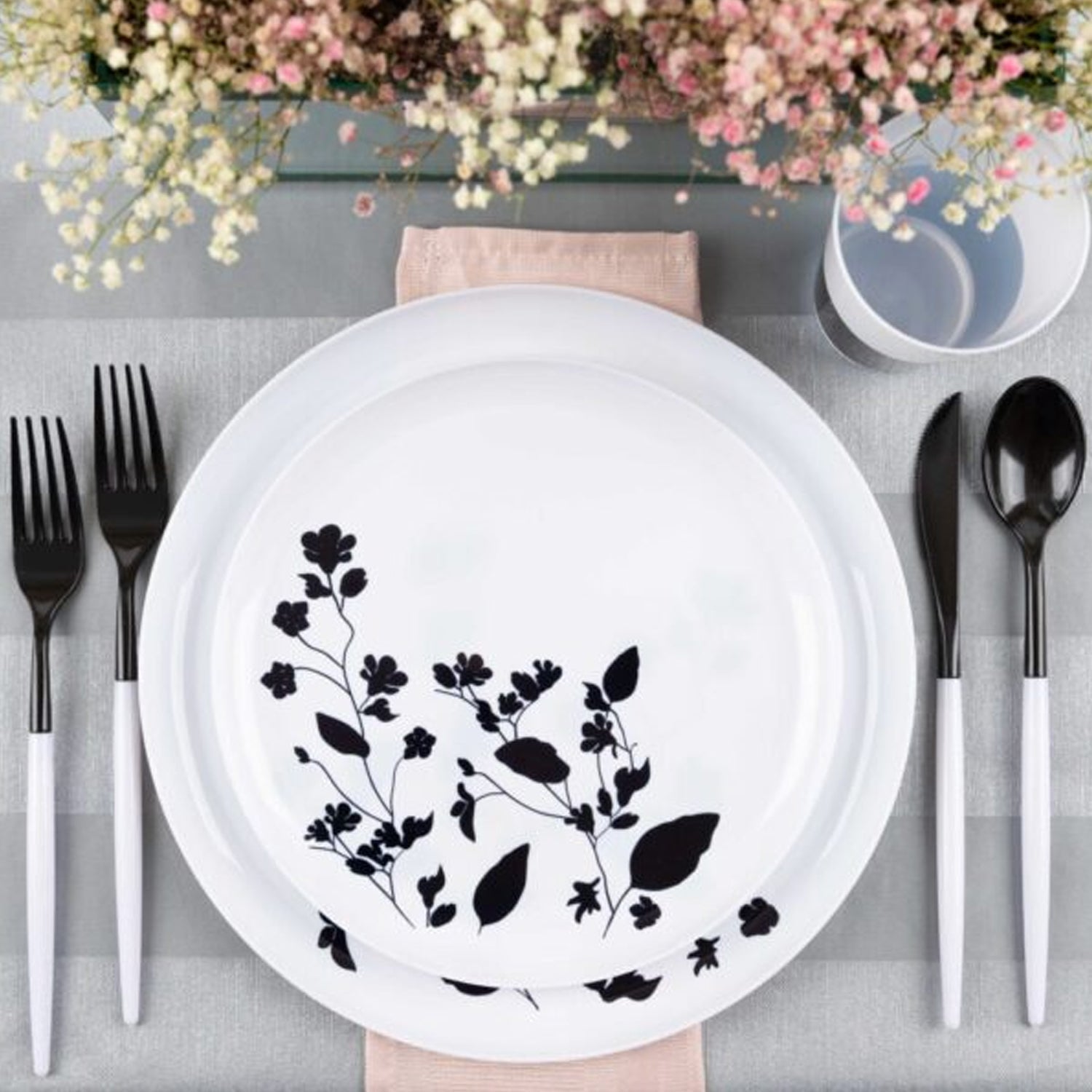*BUY BULK* Garden Collection White and Black Round Disposable Plastic Dinner Tableware COMBO Set