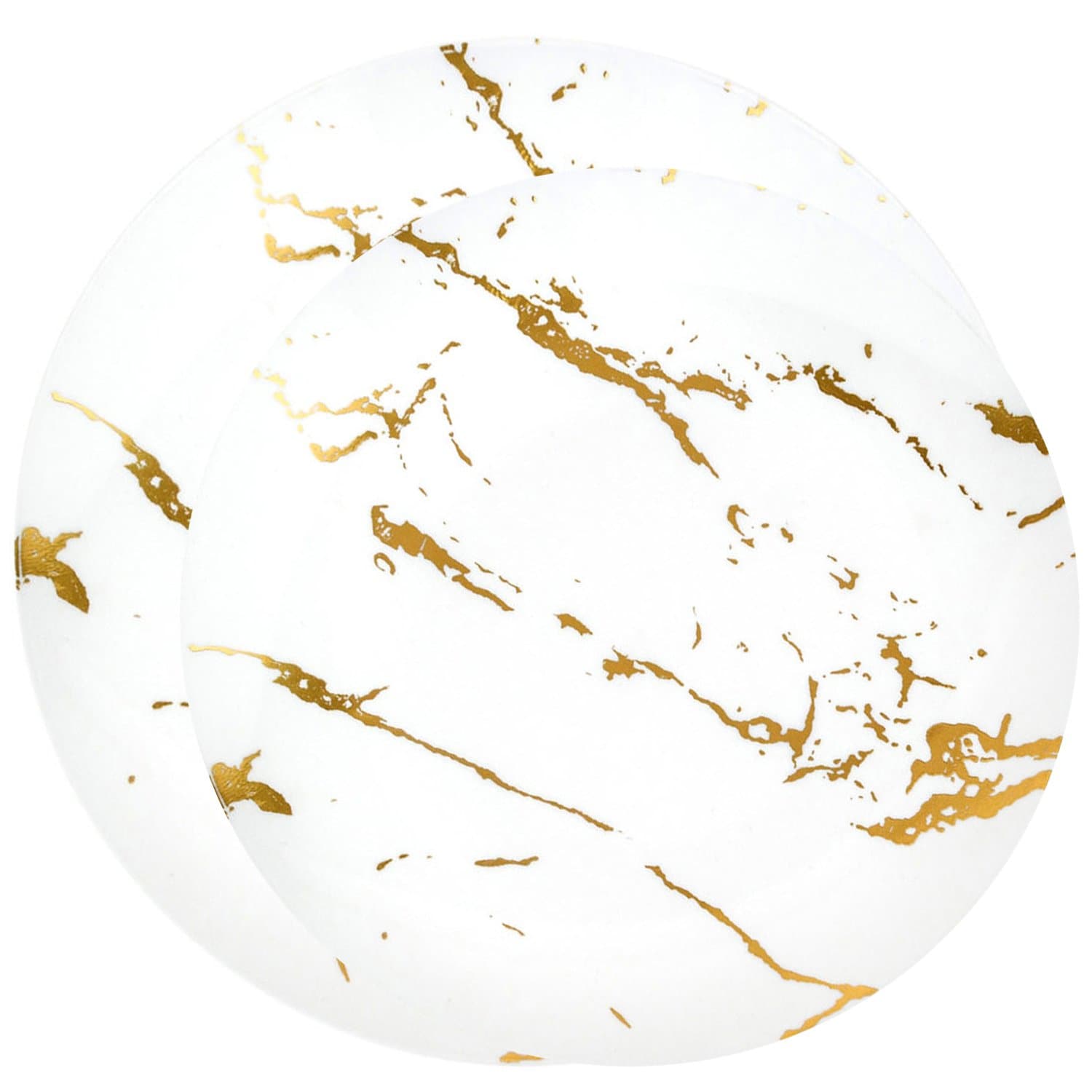 Made of durable plastic, this elegant set of plastic china has a beautiful gold stroke design across each plate. Perfect for fine dining. These Black Gold Stroke Dinner plates are great for any formal function. Ideal for Weddings, Dinners, Parties etc.