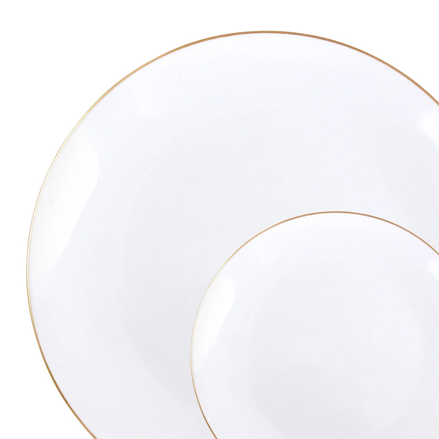 *BUY BULK* Organic Collection White & Gold Rim Disposable Plastic Dinner Tableware COMBO Set