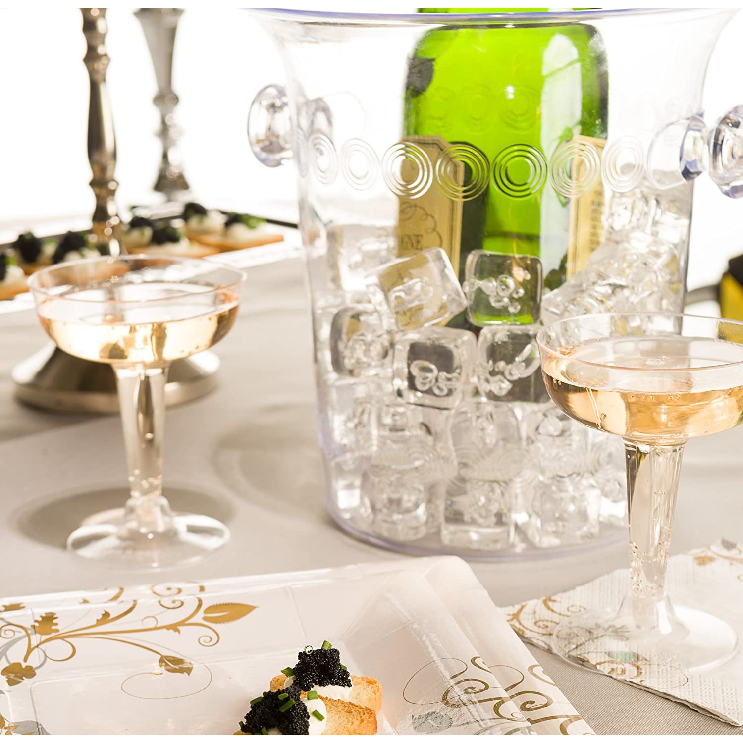 Party Dimensions 4 Quart Mini Plastic Ice Bucket, Clear, Single Count. Hard Plastic. Handles on each side. Designed for all occasions, banquets, parties, upscale catering and home. Disposable.