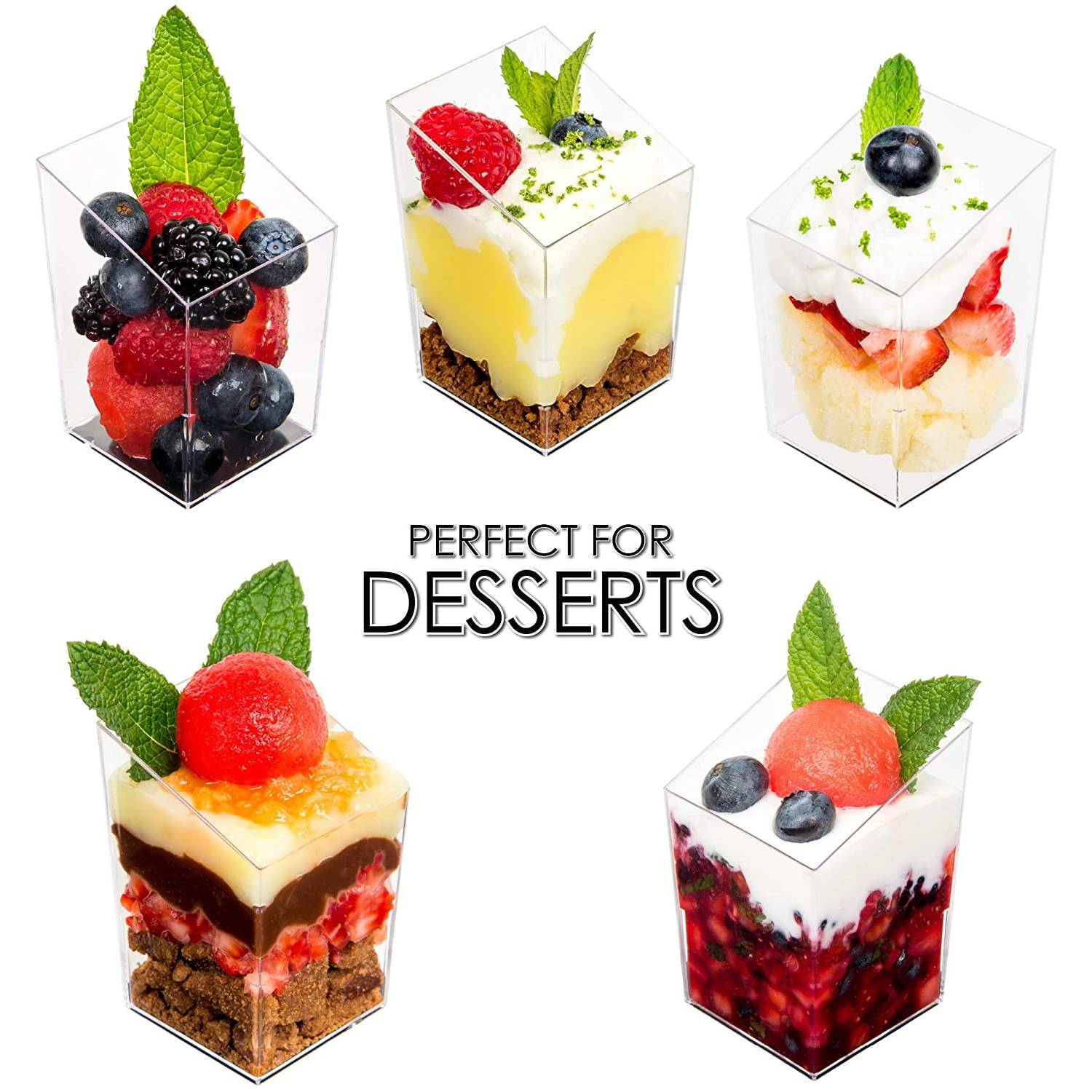 Lillian Mini Square Presentation Tower, 12 pieces. BPA Free. Designed for all occasions, banquets, parties, upscale catering and home.