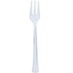 Lillian table settings mini clear plastic Forks, 48 count. This item coordinates with our many mini entertainers. The mini cutlery comes in fork, spoon, or a mix of both in clear and polished silver.