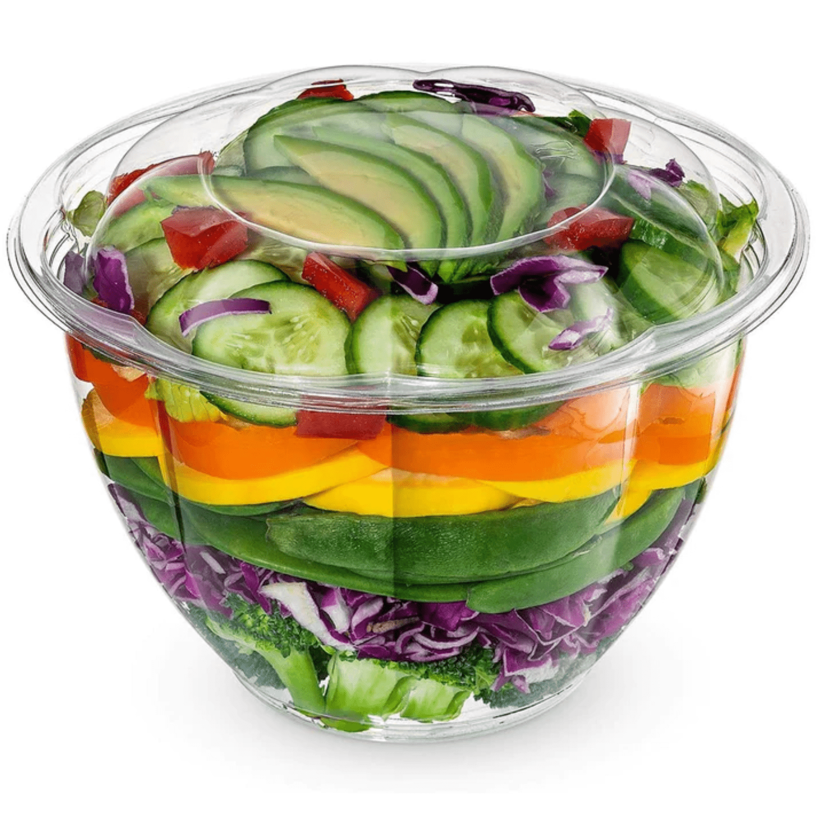 - Made from sturdy clear plastic, these salad containers are perfect for showcasing your freshly prepared salads and other foods while providing your customers with a clear view of what's inside.