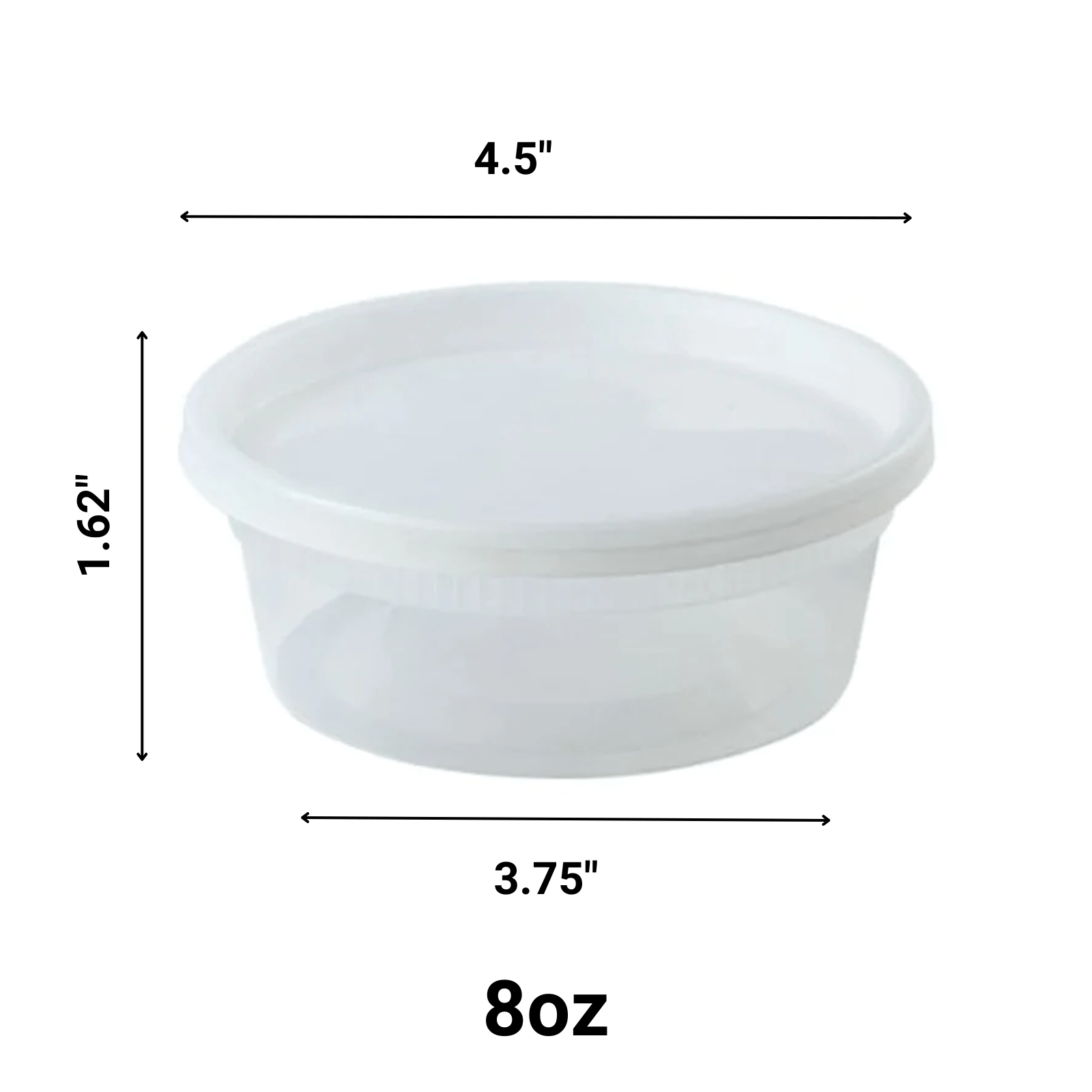 These containers have an 8 ounce capacity Deli Containers with Lids., perfect for a restaurant, take out, or freezer containers. Great for soups and stews, sauces, gravy, veggies, etc. The best Food Storage Deli Containers with Lids.