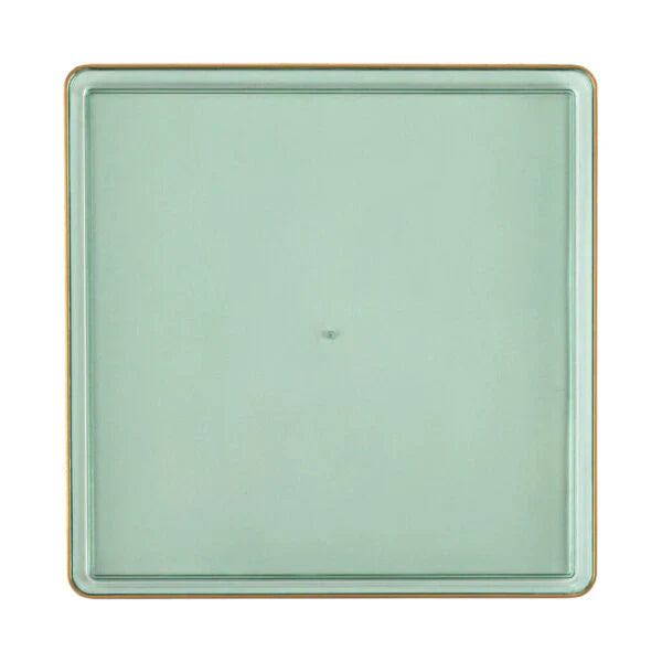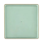 Bring freshness and sophistication to your table with The Edge Collection 10.75" Transparent Green Square Plastic Dinner Plates, accented by an elegant gold rim. These BPA-free disposable plates feature a soft translucent green hue with a refined metallic trim, perfect for weddings, garden parties, formal dinners, and upscale celebrations. With a generous size ideal for serving main courses, they offer a beautiful presentation with the ease of single use.