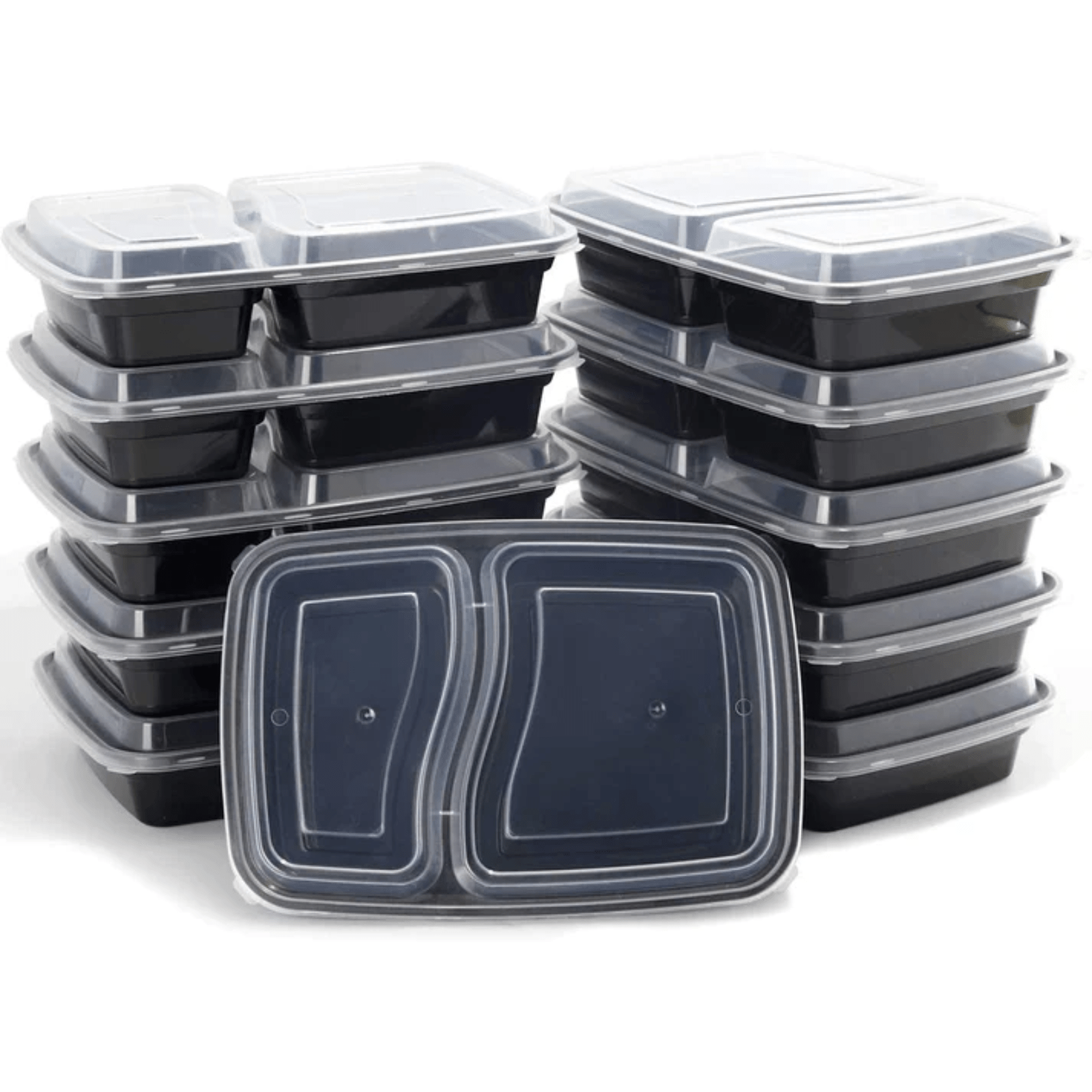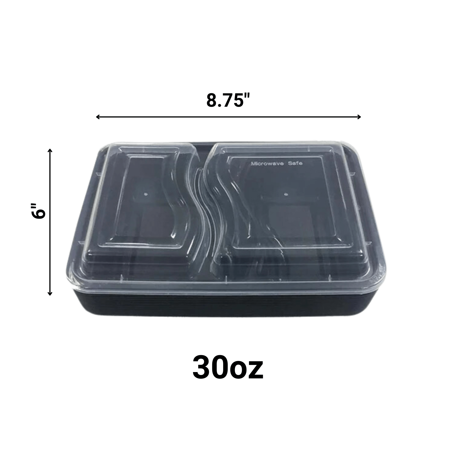 • CONVENIENT MEAL PREP: Our 30oz 2 Section Black Rectangular Microwavable Container with a Clear Lid streamlines take-out and meal prep tasks effortlessly.