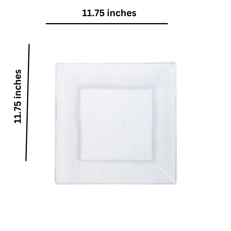 Lillian table settings clear 9.5" Square plastic dinner plates, 10 count. Designed for all occasions, banquets, parties, upscale catering and home. Disposable product.