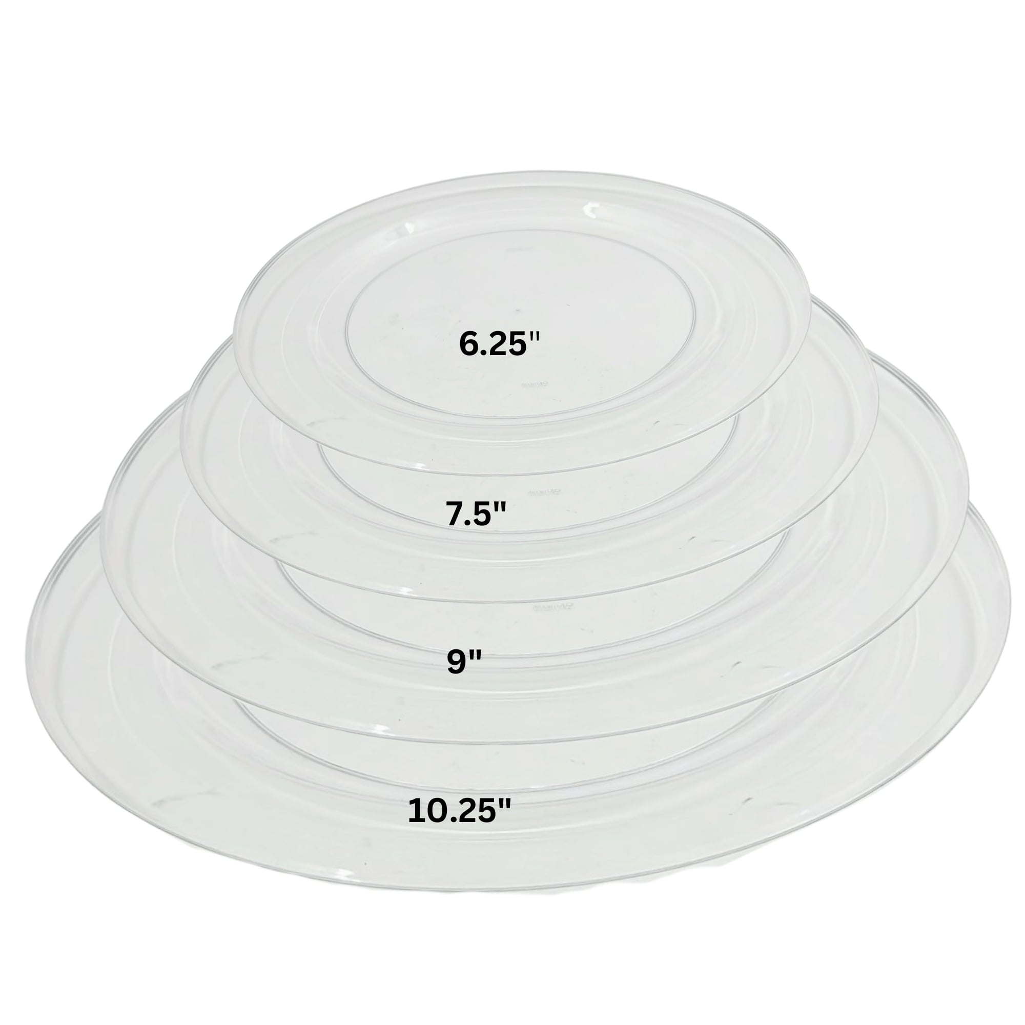 The Magnificence Heavyweight 6.25" Plastic Dessert Plate Value Pack in Clear combines style and practicality for any event. Featuring a crystal-clear design, these plates beautifully showcase desserts, appetizers, or small servings. Durable and disposable, they offer a sophisticated look while ensuring a hassle-free cleanup.