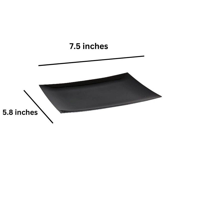 Black 7.5" x 5 5/8" Rectangular Plastic Appetizer Plates Pack of 10
