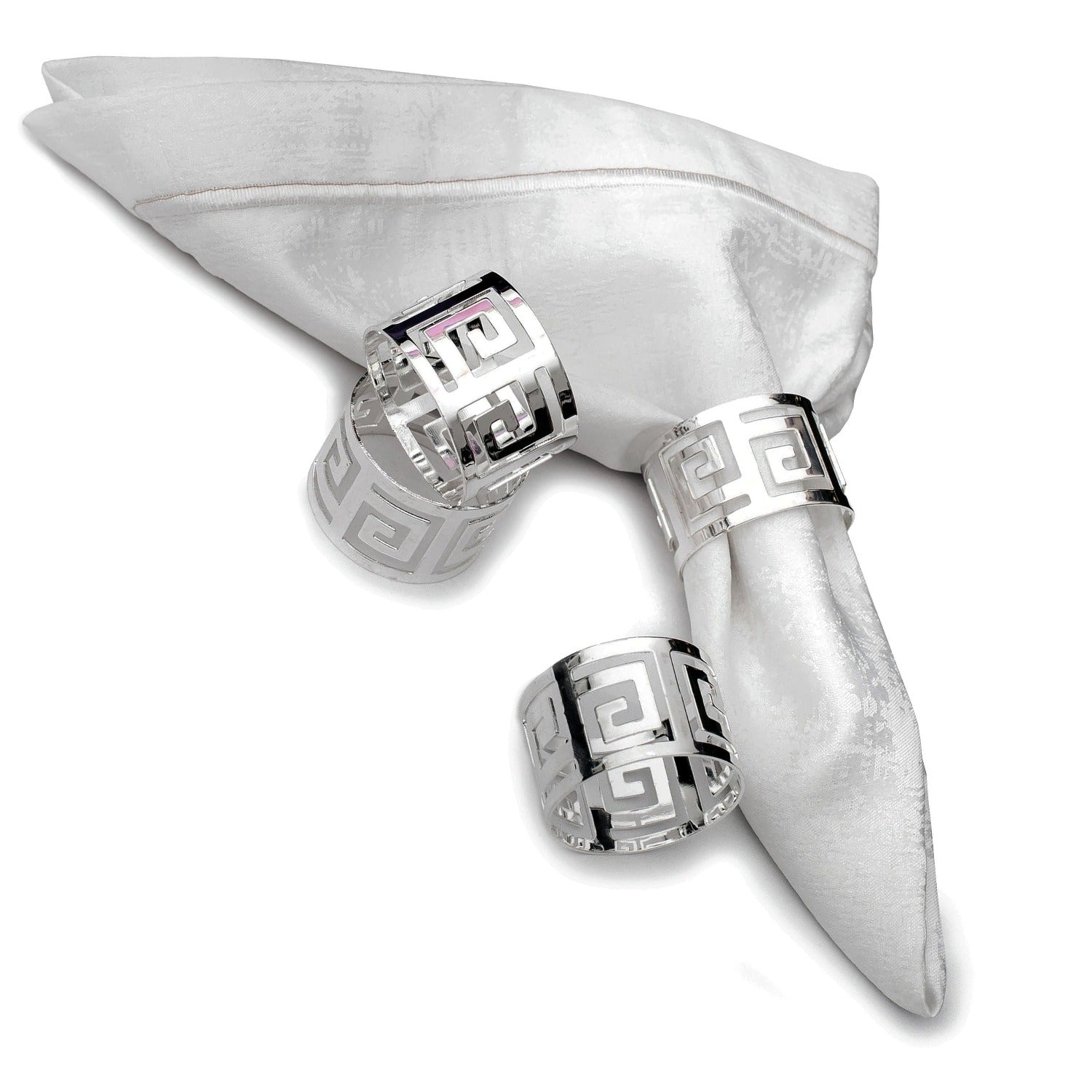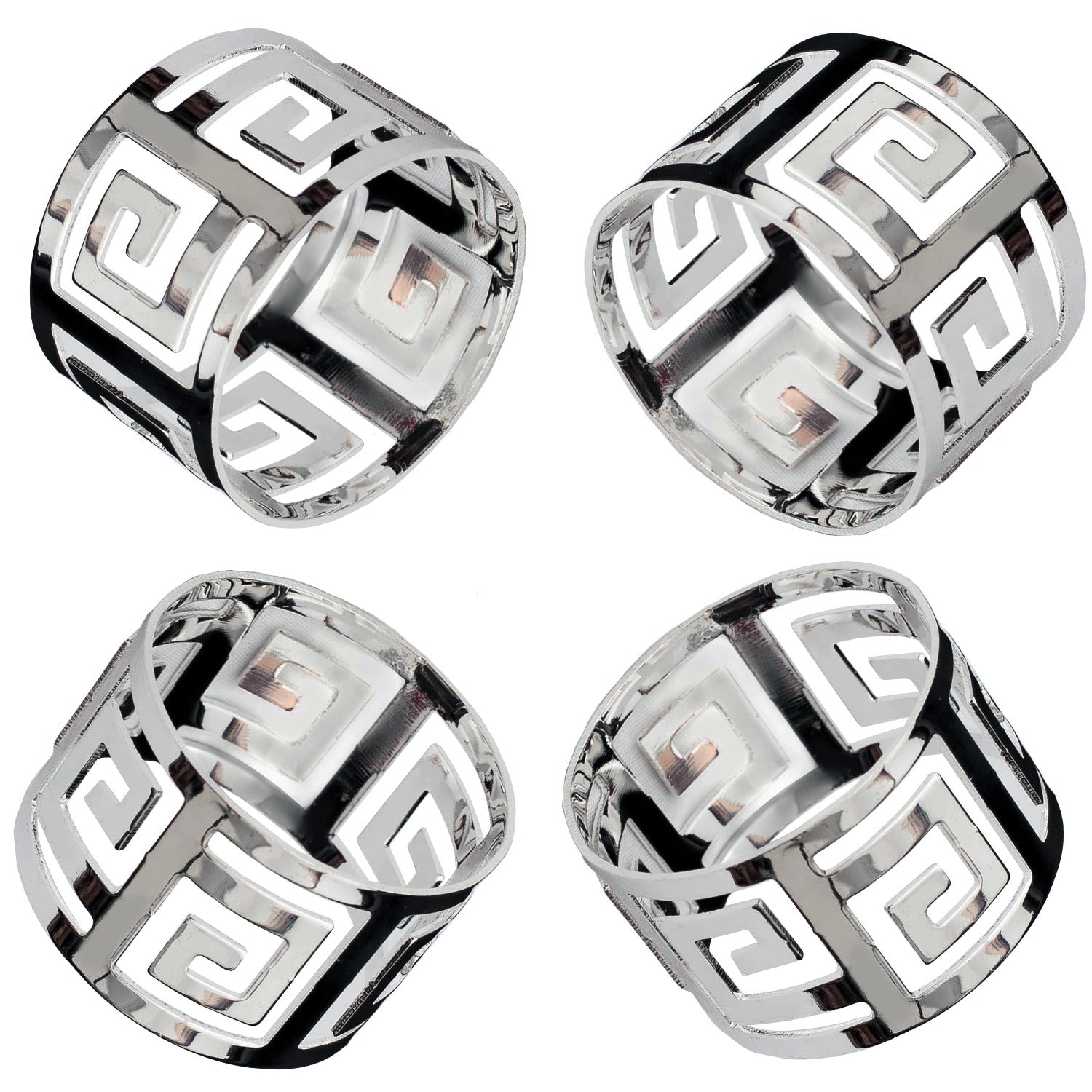 SALE Silver Meandros Pattern Napkin Rings Set of 4