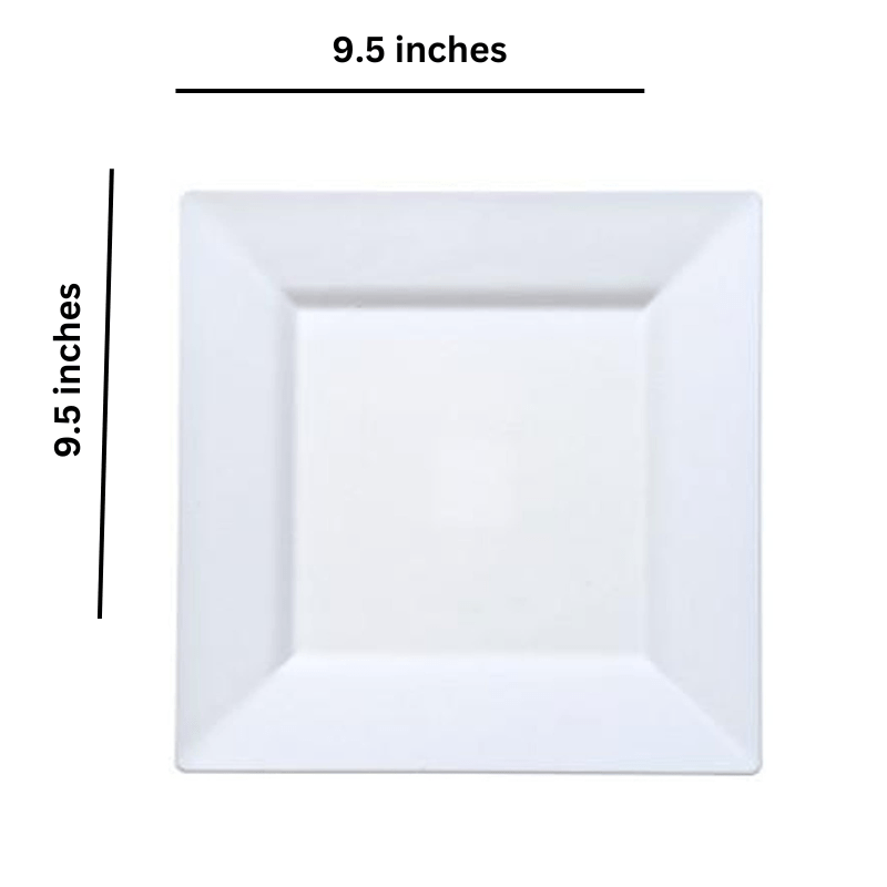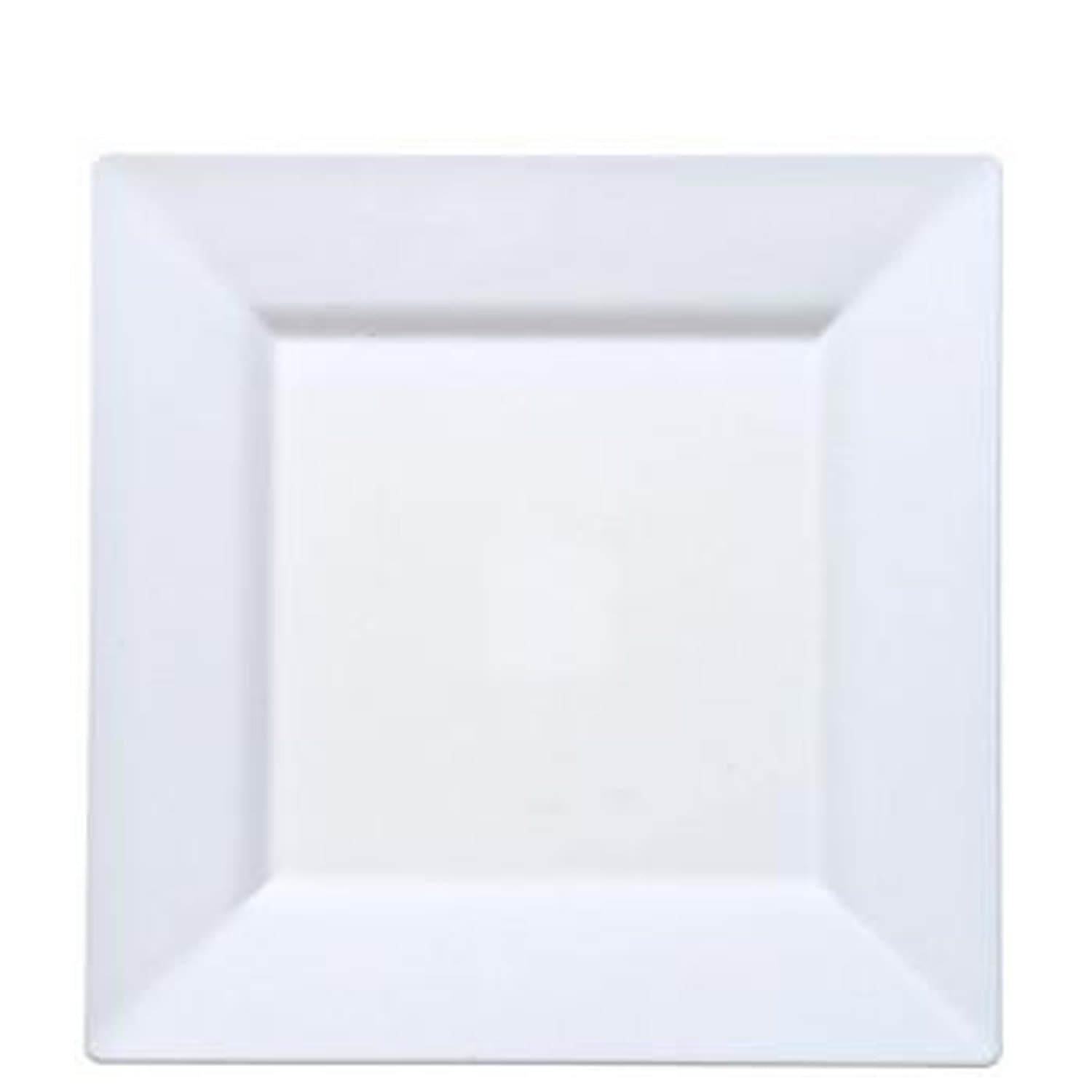 Lillian table settings pearl 9.5" Square plastic dinner plates, 10 count. Designed for all occasions, banquets, parties, upscale catering and home. Disposable product.