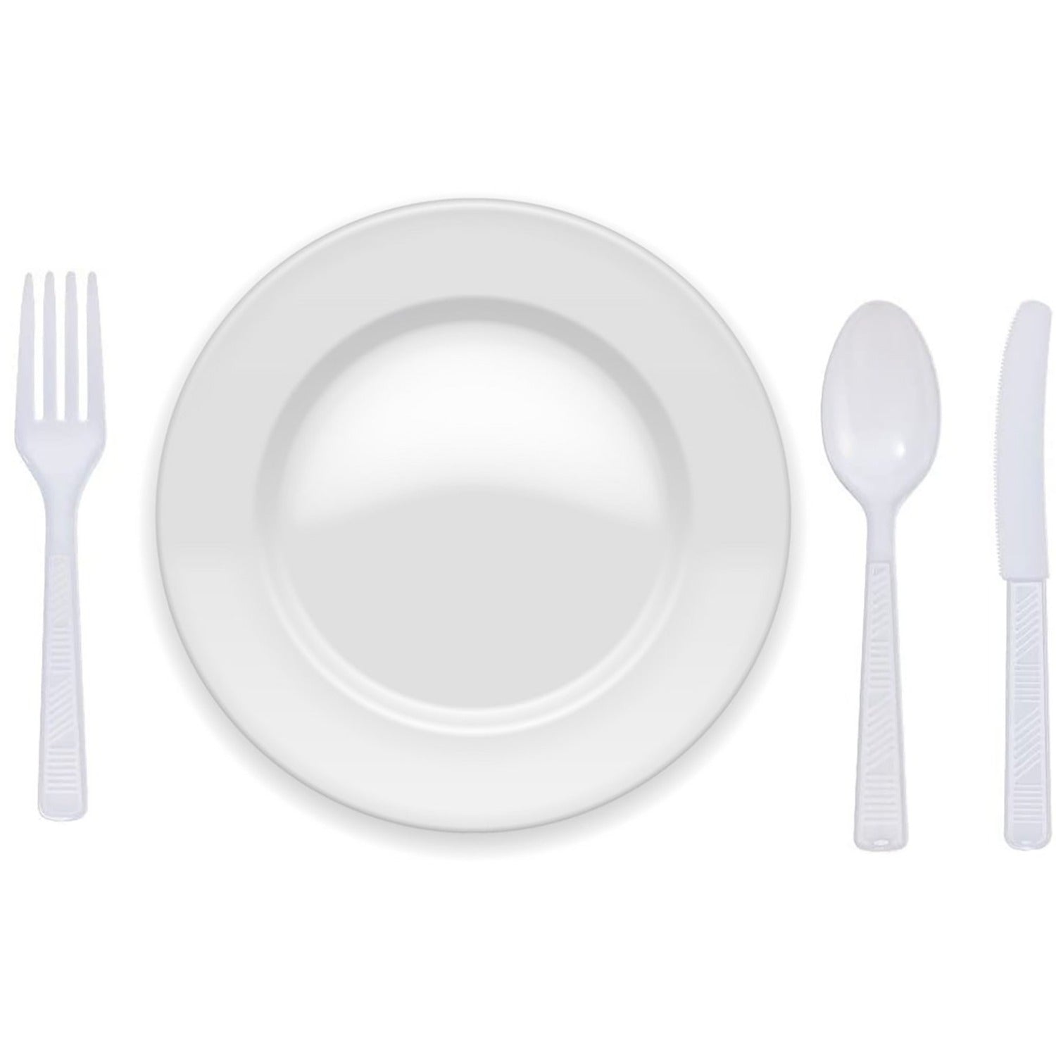 Party Dimensions White Plastic Cutlery Combo (16 each: fork, knife, teaspoon), 48 count. This item is part of a cutlery set that includes Forks, Spoons, Knives and Soup Spoons that come 48 pieces of cutlery to a bag. There are also 2 bags of combo cutlery in this color that can be purchased in either a 48 count or 36 count. Also, matching dinnerware for this color can be found in either Plastic: Plates, Bowls, Cups or Paper: Plates, Cups and Napkins. Designed for all occasions, banquets, dinners, parties, upscale catering and home.